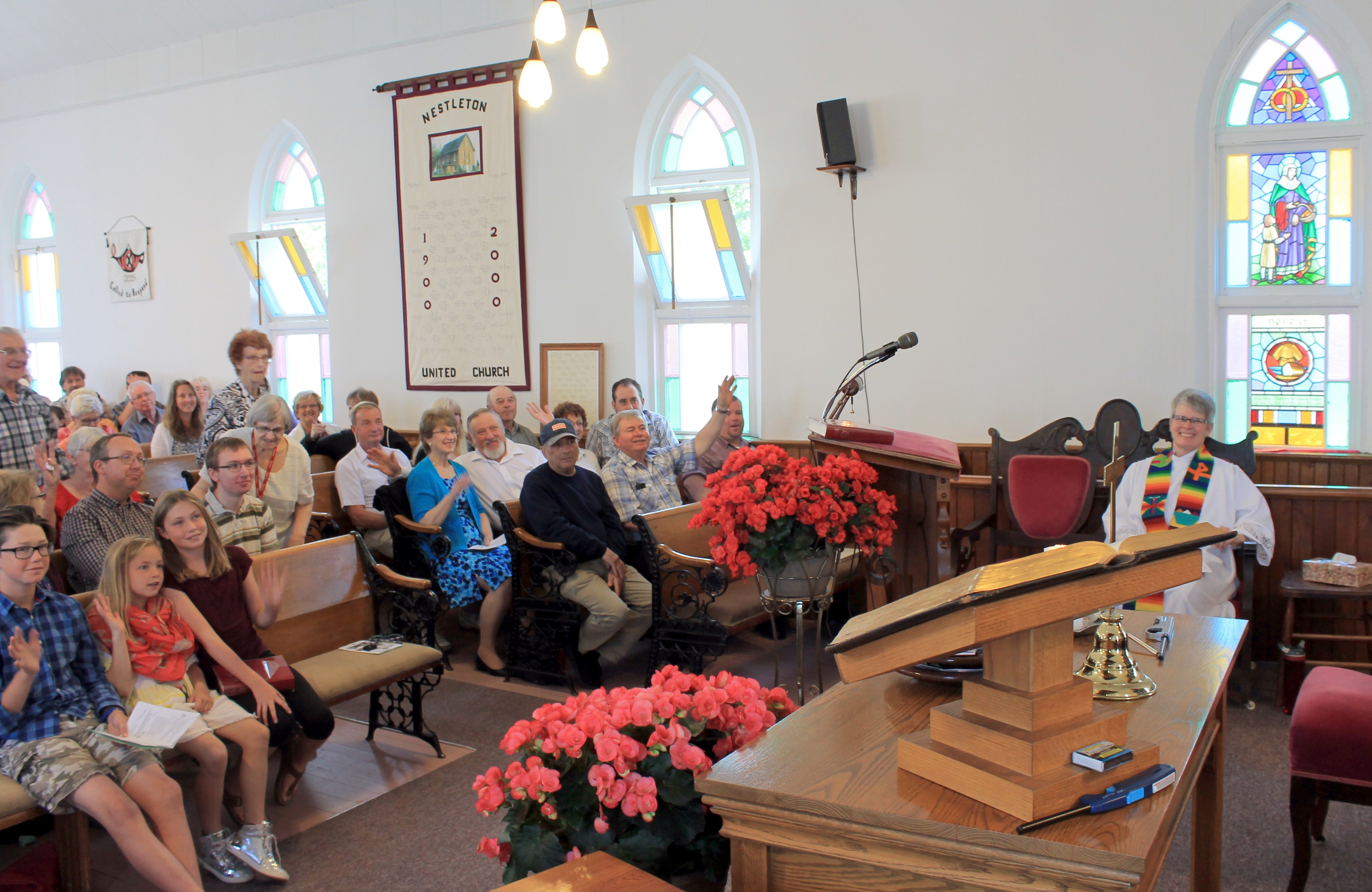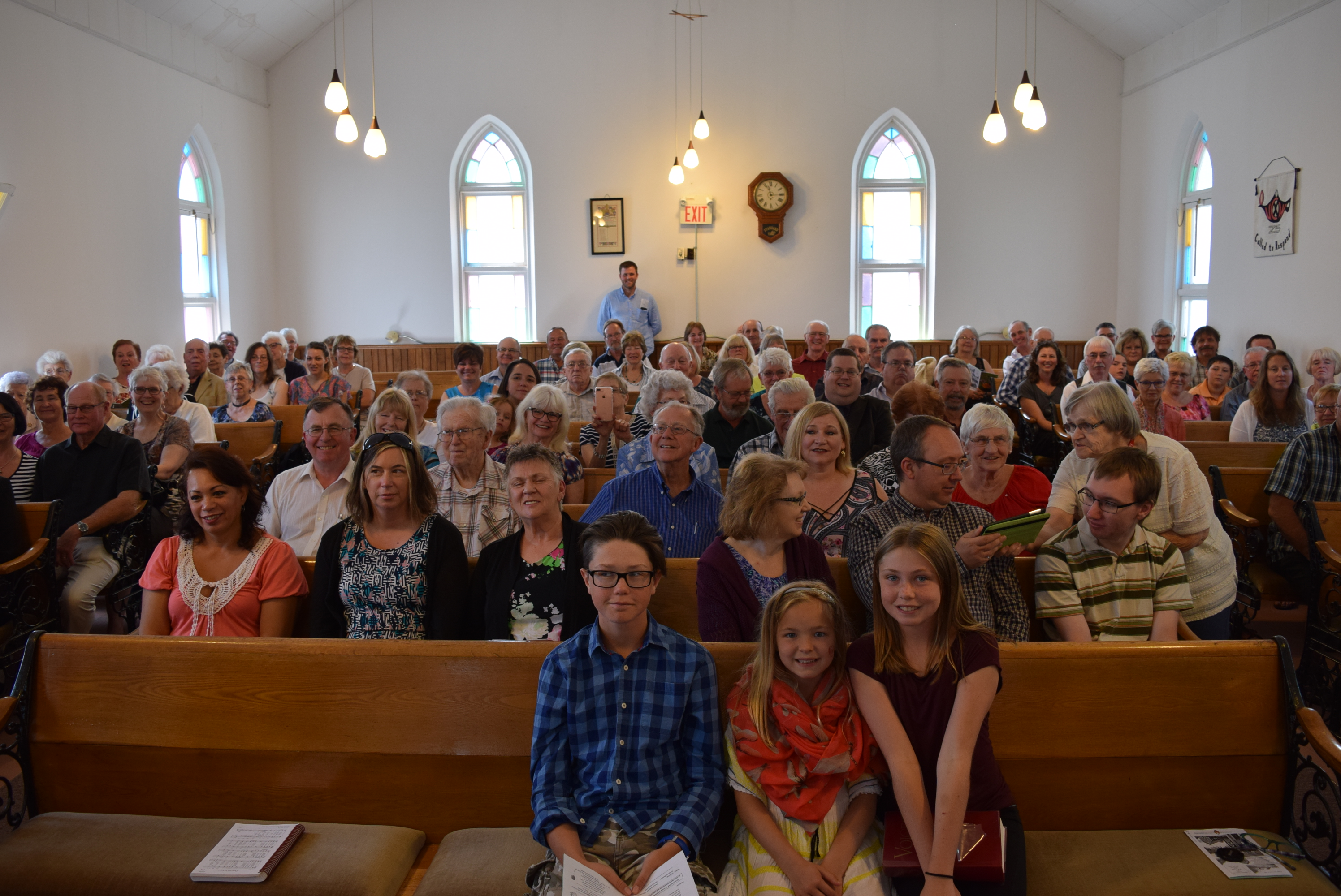 On June 25, 2017 Nestelton United Church held their last worship service in this lovely country church which was built in 1900. The building was full and the beautiful service was appreciated by all in attendance. Rev. Jennifer Uhryniw led the service and Rob Mairs told many stories about the congregation over the years. Scripture was read by Dennis Yellowlees and several brought their own memories and thoughts. Sharon Goulding extended a very warm and sincere welcome to all their members and adherents to Blackstock United Church. A delicious finger-food Pot Luck and more reminiscing while viewing the memorabilia, arranged by Janice MacKenzie, followed.